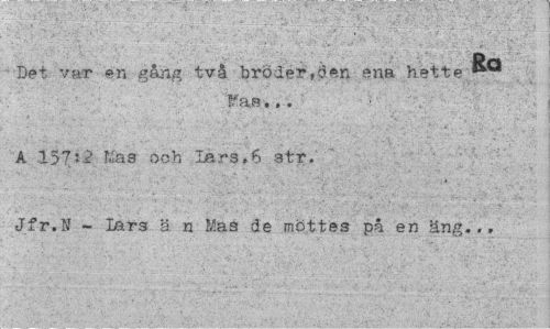 //// -t" ¦ ''' , ' , v " ; ' - - --- ".". ' .}- ¦ " -O —¦ • „ ' ¦ ¦¦¦ . //// Det var en gång två broder,den ena hette //// A 157:2 Mas och Lars,6 str, //// Jfr.N - Lars ä n Mas de möttes på en äng... ////