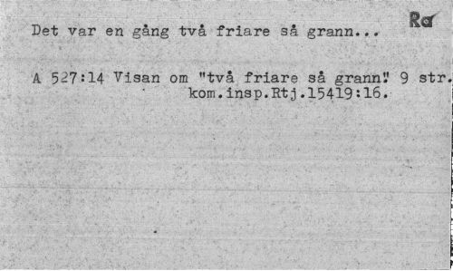 //// Ref //// Det var en gång två friare så grann... //// A 527:14 Visan om "två friare så grann'.' 9 str, //// kom.insp.Rtj.15419:16. ////