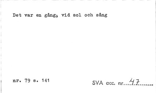 //// Det var en gäng, vid sol och sång //// nr* 79 141 SVA ccc. „r...Å2:... ////