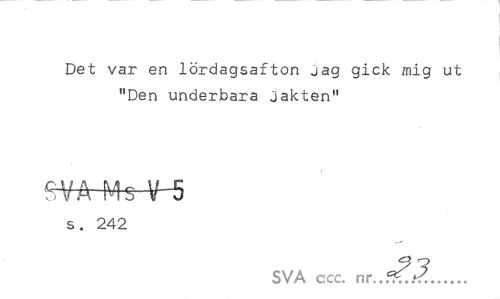 //// Det var en lördagsafton jag gick mig ut "Den underbara jakten" //// r;VA Ms V-5 //// s. 242 //// SVA ccc. nr...'—.. ////