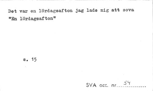 //// Det var en lördagsafton jag lade mig att sova "En lördagsafton" //// s. 15 //// SVA acc. nr___... ////
