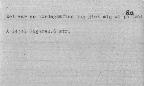 //// &a //// Det var en lördagsafton jag gick mig ut pa jakt //// A 243si Jägaren.6 str. ////