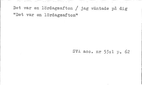//// Det var en lördagsafton / jag väntade på dig "Det var en lördagsafton" //// SVA aoc. nr 53:1 p. 62 ////