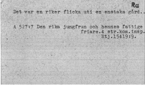 //// K® //// Det var en riker flicka uti en enstaka gård. //// A 527i7 Den rika jungfrun och hennes fattige //// friare.4 str.kom.insp. Etj.15419:9. ////