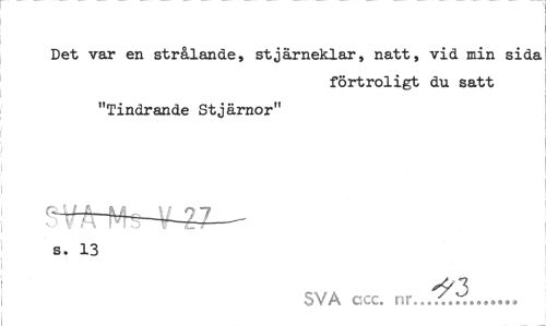 //// Det var en strålande, stjärneklar, natt, vid min sida //// förtroligt du satt //// "Tindrande Stjärnor" //// s. 13 //// SVA ccc. nr.../^^... ////