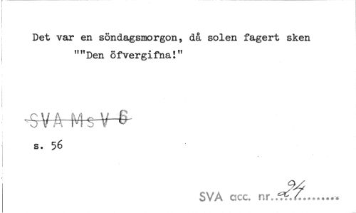 //// Det var en söndagsmorgon, då solen fagert sken ""Den öfvergifna!" //// s. 56 //// SVA acc. nr... ////