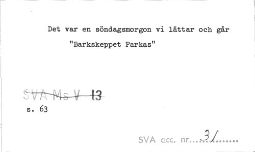 //// Det var en söndagsmorgon vi lättar och går "Barkskeppet Parkas" //// s. 63 //// SVA ccc. n... ////