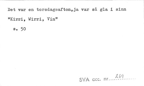 //// Det var en torsdagsafton,ja var så gla i sinn "Kirri, Wirri, Vin" s. 50 //// SVA ccc. nr...Ä... ////