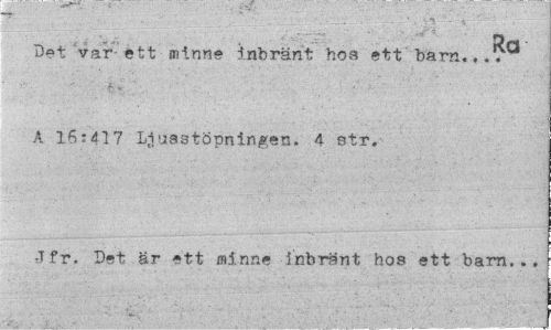 //// ; . AV- , ... //// Ra //// Det var ett minne inbränt bos ett barn... A 16:417 Ljusstöpningen. 4 str. //// Jfr. Det är ett minne Inbränt hos ett barn... ////