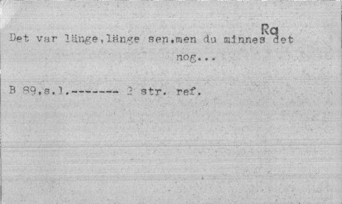 //// Rq //// Det var länge,länge sen,men du minnes det //// nog. //// | B 89.3.1.--- str. ref. ////