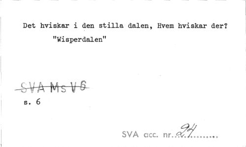 //// Det hviskar i den stilla dalen, Hvem hviskar der? //// "Wisperdalen" //// Ms V S- //// s. 6 //// SVA ccc. nr ... ////