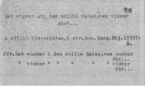 //// ¦Km //// Det vi g kar uti den stilla dalen,vem viskar //// där?... //// A.457:10 Viaperdalen.to. str.kom.insp.Rtj,19397: //// Jfr.Det euokar i den stilla dalen,vem suckar //// där... //// " viskar " " M " " viskar //// där... ////