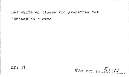 //// Det -växte en blomma vid granarnas fot //// "Endast en blomma" //// nr. 31 sr , //// SVA acc. ////