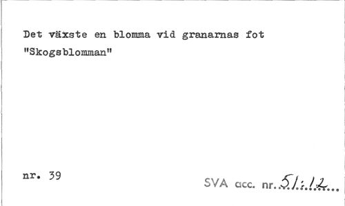 //// Det växste en blomma vid granarnas fot //// "Skogsblomman" //// nr' 39 SVA acc. nr ////