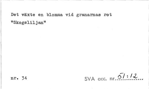 //// Det växte en blomma vid granarnas rot //// "Skogsliljan" //// ¦ //// nr. 34 SVA acc. r\r. ////