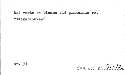 //// Det vexte en blomma vid granarnas rot //// "Skogsblomman" //// nr* 37 r,,/. //// SVA ccc. nr.. ////