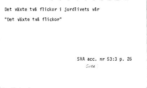 //// Det växte två flickor i jordlivets vår "Det växte två flickor" //// SVA acc. nr 53:3 p. 26 ////