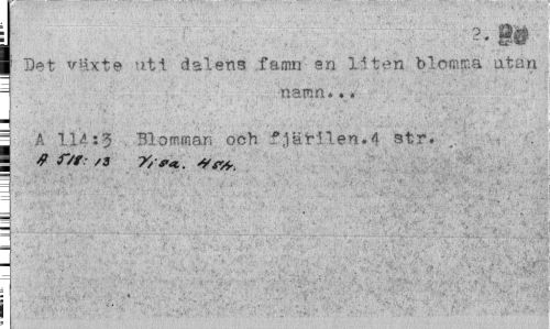 //// i //// } Det växte ut t dalens famn en liten blomma utan I namn..« //// | A 114:3 Blomman och fjärilen.4 str. . //// i r/t: /s ¦ ////