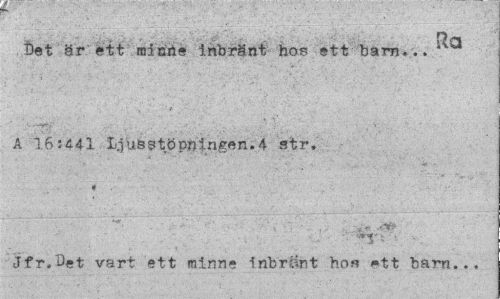 //// Ra //// Bet är ett minne inbränt hos ett barn... * //// A 16:441 uö s töpningen.4 str. « //// i. " ,Vr //// ' <*<$' t • //// Jfr."Det vart ett minne inbränt ho« *tt barn... ////