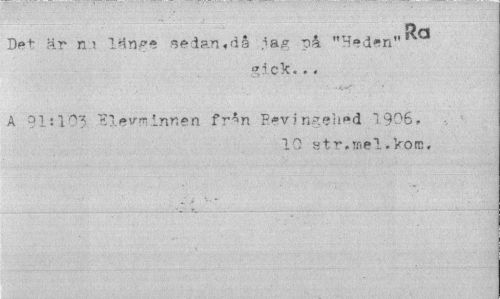 //// Det är n ? IHn^e sedan,då på "Heden" //// gick... //// A 91:103 "Slevrcinnen från Pevingeh^d 1906. //// 10 str.mel.kom. ////