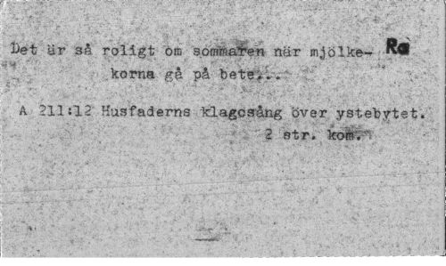 //// Det Ur så roligt om sommaren när mjölken Ra korna gå på bete,.. //// A 211:12 Husfaderns klagosång över ystebytet. //// 2 str. kofev~ //// H ¦ ..-v» ' . ////