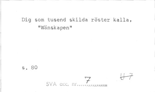 //// Dig som tusend skilda röster kalla, "Wänskapen" //// s, 80 //// ii "f //// y krr //// SVA acc. nr... ////