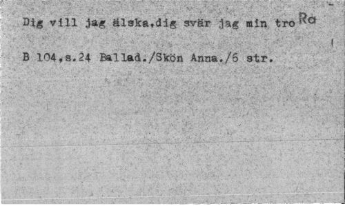 //// Dig vill jag älska»dig svär jag min tro //// i ¦ ' ''ÅL i- •¦ ' ( //// B 104,3.24 Ballad./Skön Anna./6 str. ////