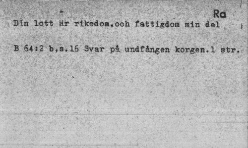 //// ; ' Ra //// Din lott ér rikedo«,ooh fattigdom min del \ B 64:2 b,8.16 Svar på undfången korgen.1 str. ////