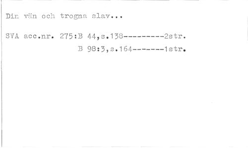//// Dir. vän och trogna slav. . . //// SYA acc.nr. 275:B 44,s. 138---2str. //// B 98:3,3.164---1str. ////
