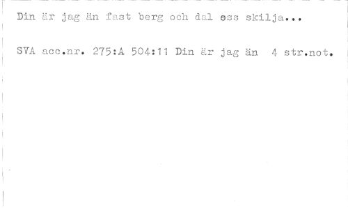 //// Din är jag än fast berg och dal ess skilja... SVA acc.nr. 275:A 504:11 Din är jag än 4 str.not. //// 1 ////
