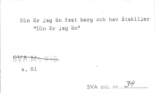 //// Din är Jag än fast berg och hav åtskiljer "Din är Jag än" //// fr.r---— //// «J \ r I t . : //// S. 81 //// SVA ccc. nr,...?hv...*¥ ////