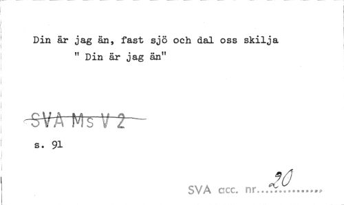 //// Din är jag än, fast sjö och dal oss skilja " Din är jag än" //// -SVA Ms V 2— //// s. 91 //// M //// SVA ccc. nr...tV... ////