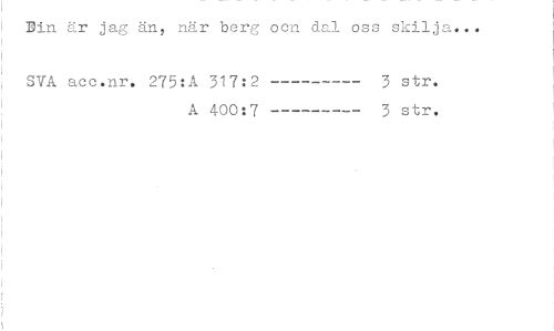 //// Bin är jag än, när berg ocn dal oss skilja... //// STA acc.nr. 275:A 317:2--- 3 str. //// A 400;7--- 3 str. ////