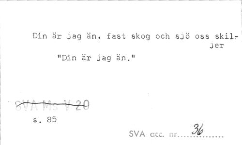 //// Din är Jag än, fast skog och sjö oss skilr //// jer //// "Din är Jag än." s- 85 v //// SVA ccc. nr___*:?!... ////