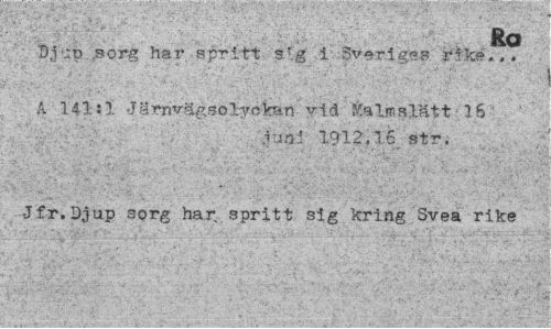 //// i" Ra //// Djup ,sorg har spritt sig i Sveriges rike... //// A 141:1 -iMmvägsolyokan vid Kal»slätt -.16 . juni 1912.16 str. //// " • ' ' . ' V- • .'¦ -V" //// Jfr.Djup 3org har spritt sig kring Svea rike //// v -.v ;v ¦ v //// ; V. » i"'<>• .-*'* ' v ¦ - ".-V".: »v- ////