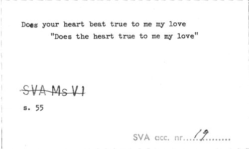 //// Dögs your heart beat true to me my love //// "Does the heart true to me my love" //// s. 55 //// SVA ccc. nr. //// ... ////