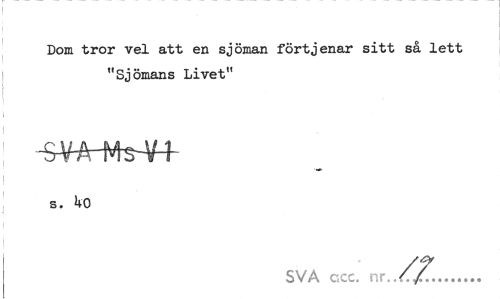 //// Dom tror vel att en sjöman förtjenar sitt så lett "Sjömans Livet" //// -S¥tH%-¥+ //// s. Uo //// SVÅ ccc. nr .a... ////