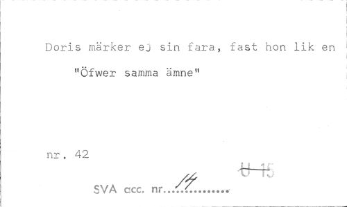 //// Doris märker ej sin fara, fast hon lik en "öfwer samma ämne" //// nr. 42 //// SVA ccc. nr. ... ////