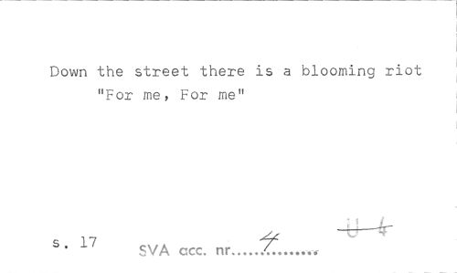 //// Dovvn the street there is a blooming riot "For me, For me" //// s' 17 SVA ccc. nr... ////