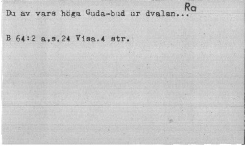 //// rf M //// Du av vara höga ^uda-bud ur dvalan... B 64:2 a«s.24 Visa,4 str. ////