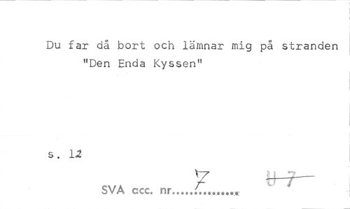 //// Du far då bort och lämnar mig på stranden "Den Enda Kyssen" //// s. 12 //// SVA ccc. nr...H"...* * ////