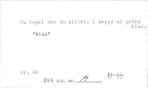 //// Du fogel der du sitter, i skygd af gröna //// blad , //// "Wisa" //// nr , 48 j_j 1 r //// A tHtf //// SVA ccc. nr...<.S... ////