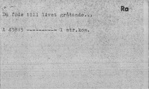 //// Ra ?: //// Du föda till livet gråtande;... A 4"58:5---1 str.kom. //// • " ' ., ' ; . . , . ... ¦ V. r '.• "• ...'..' • ' - ."»• , •; //// " '' '.•' ' "-.". • . ' " ' , . * t, . * ' -'t. v -* ////