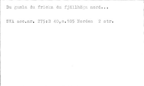 //// Du gamla du fricka du fjällhöga nord... SYA acc.nr, 275:3 40,s.185 Horden 2 str. ////