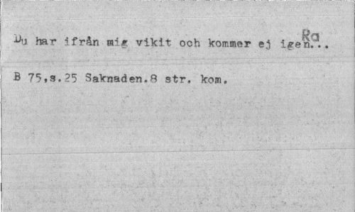 //// , , Ra //// har ifrån mig vikit och kommer ej igen... B 75,3.25 SaVnaden.8 str. kom. ////