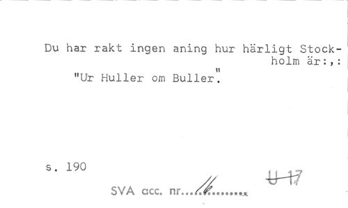 //// Du har rakt ingen aning hur härligt Stockholm är: > : //// ti //// "Ur Huller om Buller. //// ^ -tHf //// SVA ccc. nr.../T^... ////