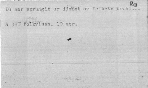 //// Ra //// Du har sprungit ur d.iuoet av folkets bröst... A 310" Folkvisan. 10 str. ////
