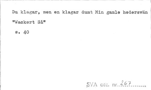 //// Du klagar, men en klagar dumt Min gamle hedersvän "Vackert Så" s. 40 //// ¦SVA ccc. nr.ii.?... ////