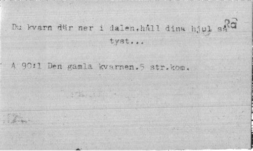//// Pä //// Du kvarn d^r ner i dalen,håll dina h.iul så //// tyst... //// A 90Jl Den gamla kvarnen.? str.kom. //// , ; jfr'- • ////