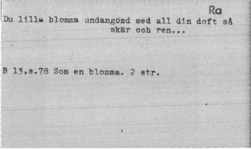 //// Ra //// Du lilla biorama undangömd med all din doft så //// skär ocb ren... //// B 13»s,78 Som en blomma, 2 str. //// t ////